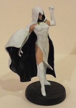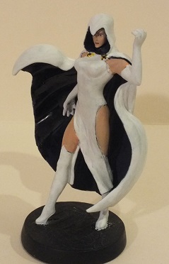 This was my second customization. This was pretty much just a paint job of the Raven figurine for DC from her dark costume to her white one. The inside of her cloak was repainted black, the cloak clasps were painted yellow and used a black felt tip pen to add the design. Noticed that picture actually has slippers and legs exposed, may paint over her white leggings in the future.