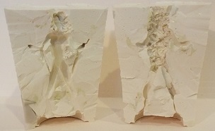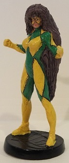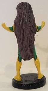 Made a rubber mold using the Starfire figurine, then poured resin in, which was ready to go after 15 minutes. Had to make several copies, as the earlier ones had trouble with air bubbles in the chin, hands and arms. Had to use SuperSculpey to mold the hair so that it was straight, then after baking, proceeded to paint.