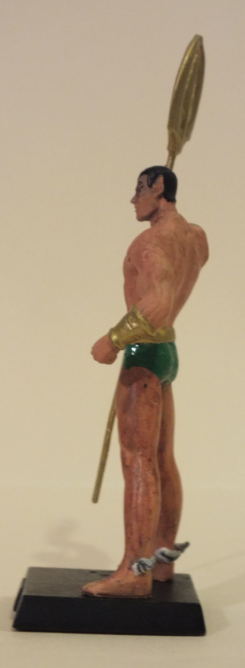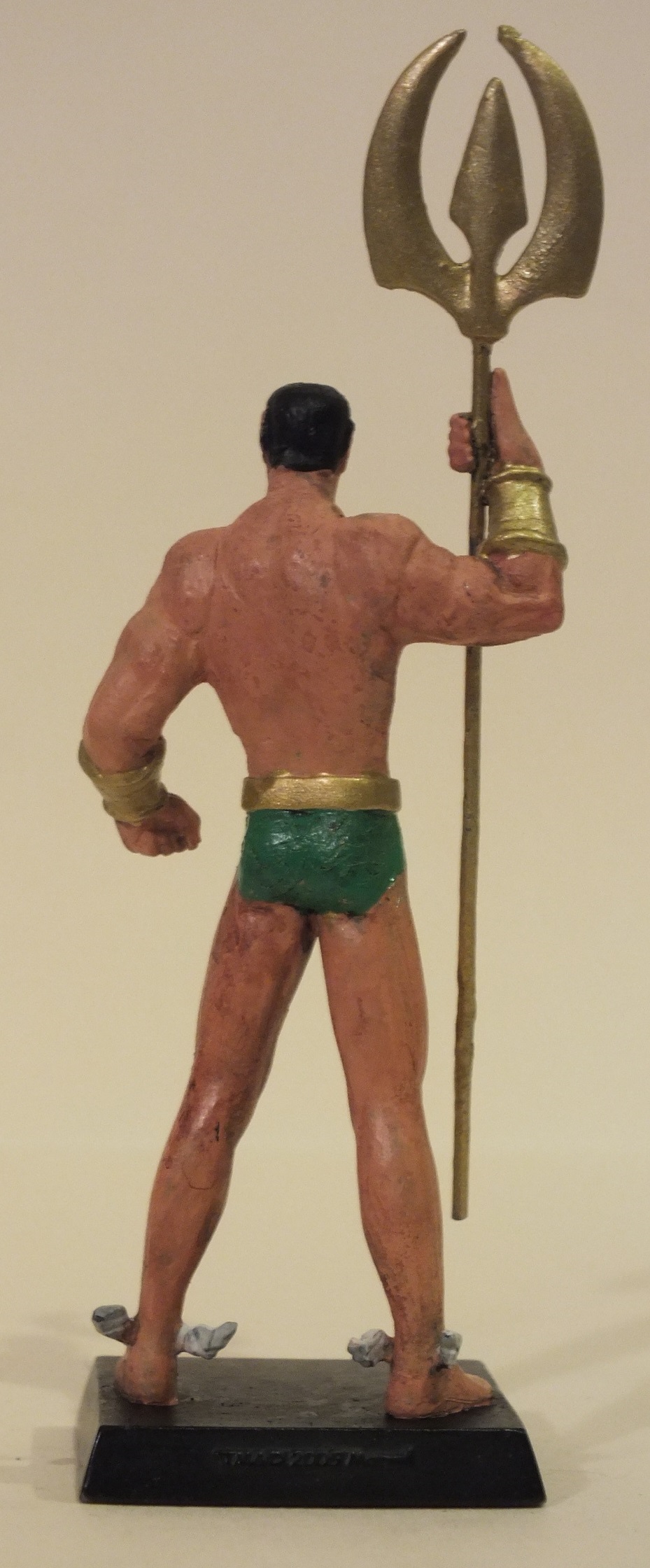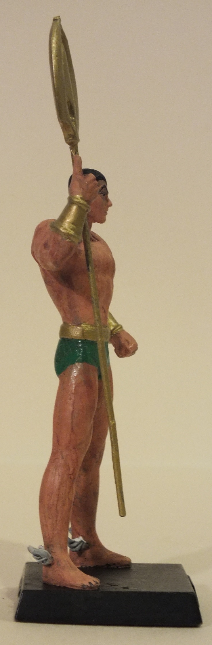 Used the Marvel Namor as the base figure, but wanted to change his costume. The hard part was wittling away at the shoulder pads with an exacto knife, as well as cutting away his underarm fins. After that it was reversing the way he holds his trident, and then painting on his classic costume.