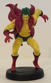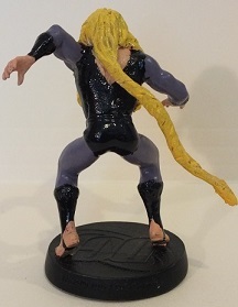This started using the Creeper figurine from DC. I then had to remove his red fur cloak, rebuild his back, and then add Wildchild's hair using SuperSculpey (his ponytail has a paperclip inside it to support it. Once baked and hard, proceeded to paint, and then used a fine black felt pen to draw in toes.