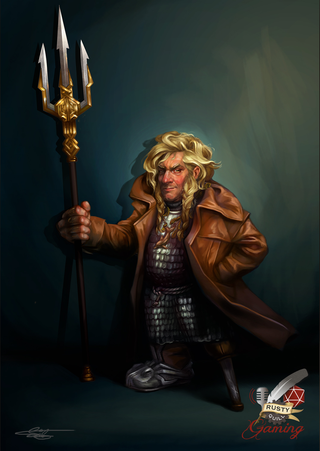 Dwor left his home deep in the earth in search of adventure and riches. His prowess with a longaxe earned him some coin as a caravan guard, but not the hoards of treasure he longed for. He supplemented his meagre wages by “allowing” certain items from the caravans to be “lost” in transit for a fee. While enjoying a pint at the Yawning Portal one evening, Dwor was offered a small fortune if the last wagon of the next trade caravan was “lost” in transit by one of his kinsmen, calling himself Jarundar. Dwor agreed without thinking about what it would take to “lose” a whole wagon. Eight heavily armed Ogres and several rogues is what it took to “lose” that wagon. The caravan of four wagons was reduced to kindling and the guards and drivers were easily dispatched. Dwor’s right leg was severed just above the knee by the Greataxe of one of the Ogres that ambushed the caravan. Dwor heard Jarundar order the Ogres to leave no witnesses as the warm embrace of unconsciousness enveloped him. Pennyweight had easily picked up the trail of the Ogres marauders and followed, hoping to cash-in on the mayhem and pick-up a few trinkets. Instead he found one of his regular clients with one of his legs severed and potentially bleeding to death. PW quickly camouflaged his and Dwor’s presence from the Ogres and the other members of the ambush team. Once the coast was clear, PW dragged Dwor to his home and tended as best as he could the massive wound. Shooting pain from his right foot awoke Dwor. He found himself convalescing in the subterranean home of small-time Halfling thief/fence Pennyweight. After several months of convalescing in PW’s home, Dwor began the slow journey back to Waterdeep to inflict vengeance upon Jarundar and the Red Sashes.