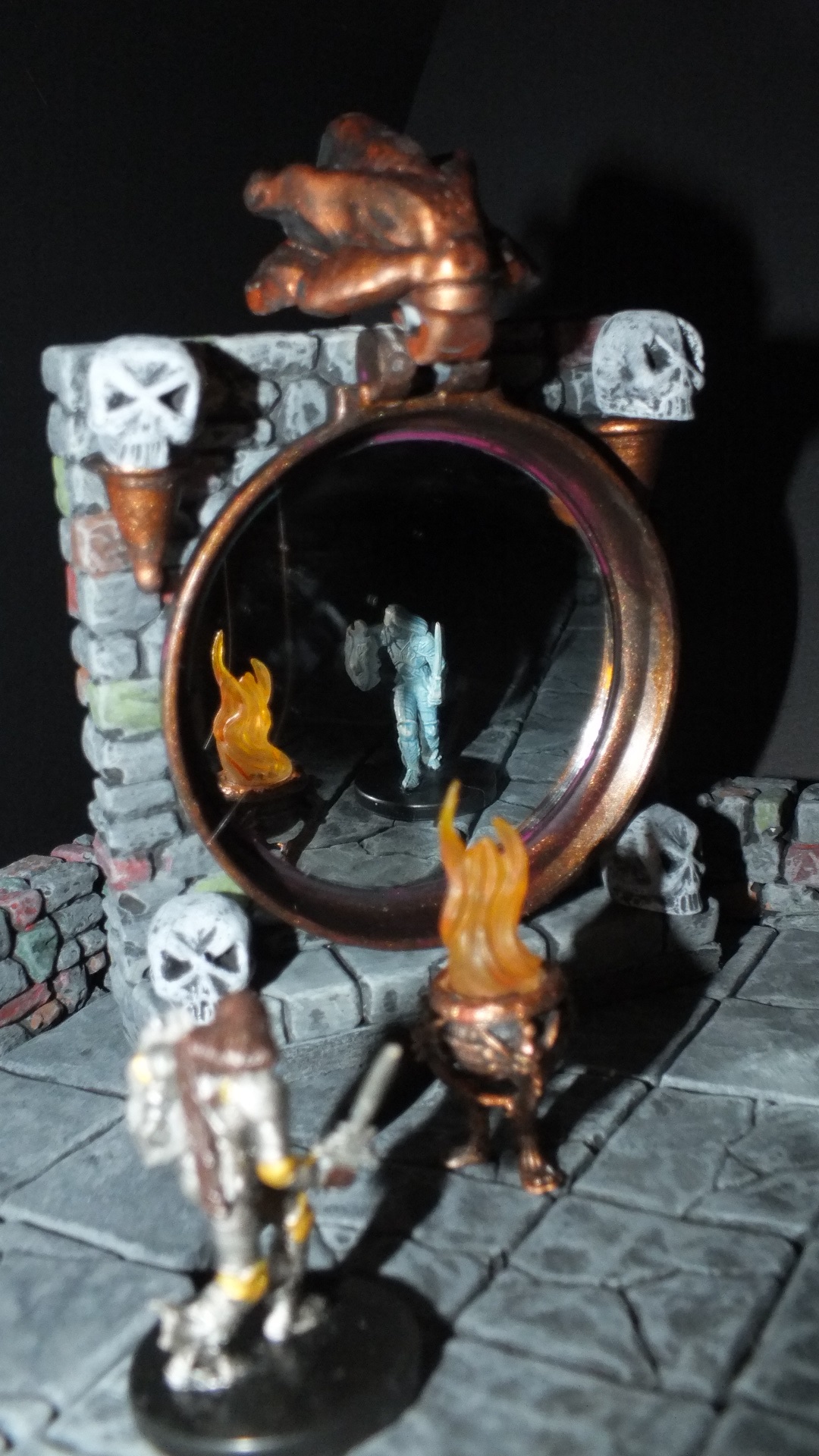 Not even in the top 50. Too subtle I think. All who gaze into this evil mirror must face their own Dark Reflection, which emerges to attempt to take their place in the real world. The dark reflection is a duplicate mini with a different paint scheme, but is off camera so you only see its reflection. |