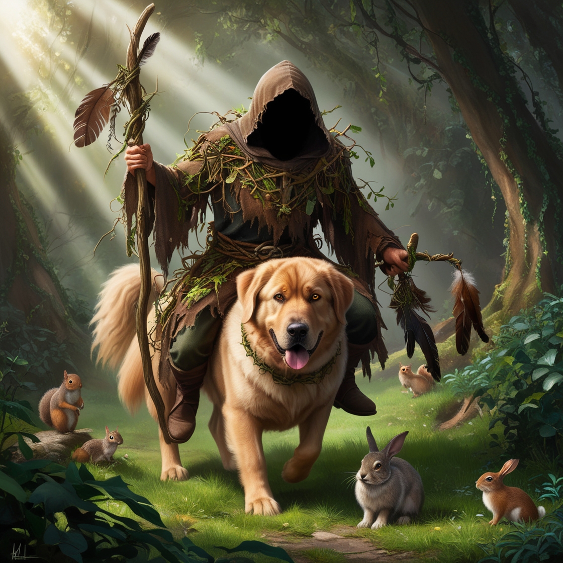 Gorgonzola is a male halfling druid, a mysterious figure and follower of Obad-Hai. He has a faithful riding dog companion named Twitch.