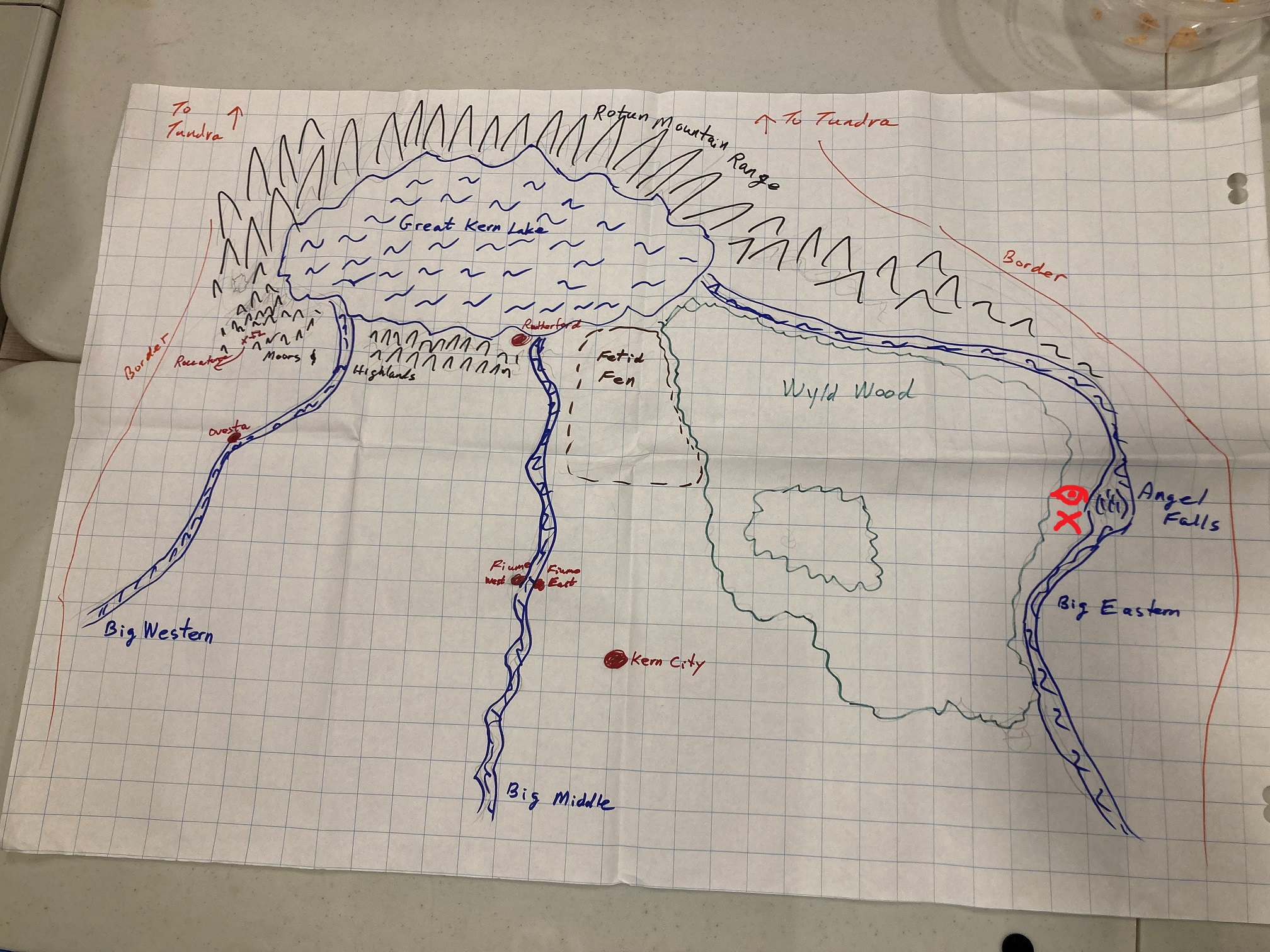 External wars, internal corruption, civil hostilities, wars of succession, all increased as the empire aged. Time weakened its unity, and it began to fragment. The final blow was a demonic invasion from the Abyss itself. Hordes of demons, legions of frost giants along with monstrous humanoids invaded from the north over the Rotun Range of mountains. Joined by nations of elves and dwarfs, the Empire fought back. Known as The Last Empire War it lasted well over a generation. The final great battle decimated both sides. But the invasion was halted. The demons were demolished and the few remaining giants retreated back to their northern lands. But the empire was shattered, the land devasted. It took time, much time, to heal. As it did so, other nations took form, surrounding what little remained of the empire remanent. And so now the Kingdom of Kern exists as a bone surrounded by a dog pack, each dog not really needing the bone but unwilling to let any other dog have it. And so, no dog tries to pick up the bone, knowing that the rest of the pack would gang up on it. It is in every dog’s best interest to just leave it and watch that no other dog tries to take it.