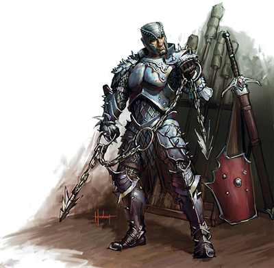 Ska'arr unleashed the Beast, and with a primal fury, launched himself into the midst of the orc scouts. Lord Faragut was there, at his back, watching for attacks from behind. The spiked chain in his hand twirled, twisted and tripped opponents, as though it were alive, striking like a serpent, slapping swords away, while savaging gray sinewy flesh and breaking orc bones, again and again, without pause.